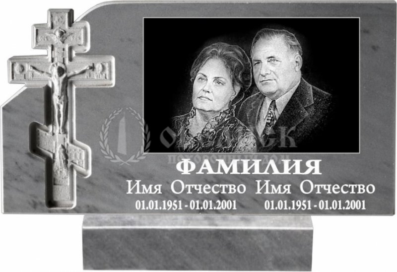 Фрезерованный семейный памятник из мрамора с крестом №30